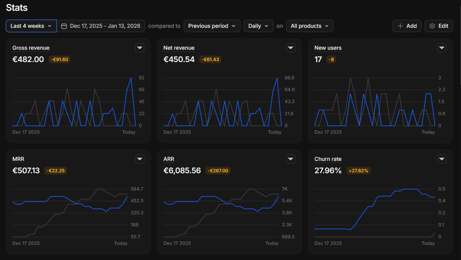 Mon deuxième client, on fait actuellement +1k€/jour. Ce genre de résultat arrive quand un bon dev rencontre un bon marketeur. C'est le meilleur combo.